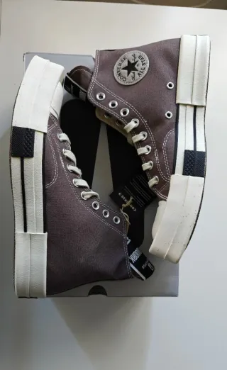 Zapatillas Converse x Rick Owens TurboDrk. - Diseño de caña alta. - Cordones blancos. - Suela de goma blanca con detalles negros. 📏 Talla 42.5 9 USA 📦 Envío en doble caja 🏷️ Nuevas a estrenar ✈️ Envío 24h #converse #rickowens #colaboracion #conversexrickowens #turbodark #chucktaylor #comversechuck