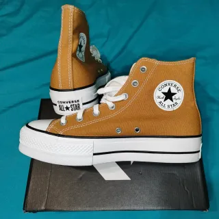 Converse ORIGINAL con su caja. De plataforma y bota color blanco. Las he puesto 2 veces, como se ve estan prácticamente nuevas. Las vendo por no usar.