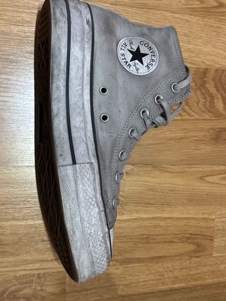 Zapatillas Converse originales de ante en color gris. Se entregan con su caja original. - Modelo de caña alta. - Detalle de doble línea en la suela.