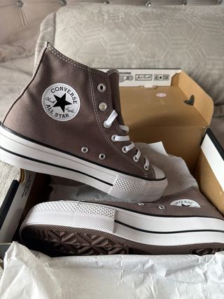 Zapatillas Converse nuevas con doble plataforma. - Color marrón y blanco. - Cordones blancos. - Suela de goma.