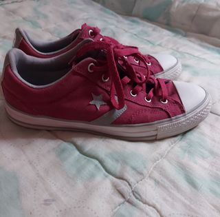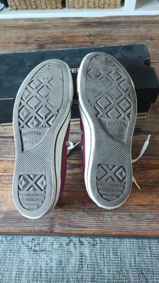 Zapatillas bajas Converse All Star en color granate Talla 37 aunque tallan un pelín pequeñas. Quizás bien paga alguien con una 36,5. Usadas una sola vez porque quedaban pequeñas. - Cierre de cordones. - Suela de goma blanca. - Detalle de logo en la lengüeta y el talón.