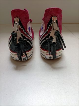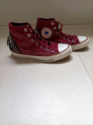 Converse granates con brillos blancos plateados de caña alta con detalles de cremalleras en los talones. N° 37 Muy poco uso. Prácticamente nuevas como se aprecia en las fotos.