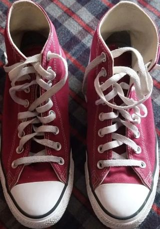 Zapatillas Converse Chuck Taylor All Star granates de caña alta. De lona. Muy cómodas. En perfecto estado, casi sin uso, tal como las ves en las fotos. Anímate y te regalo unas NIKE AIR FORCE 1 para que las des un último uso. Además Tengo más CONVERSE en mi perfil, blancas y negras. Si haces un lote te hago precio.