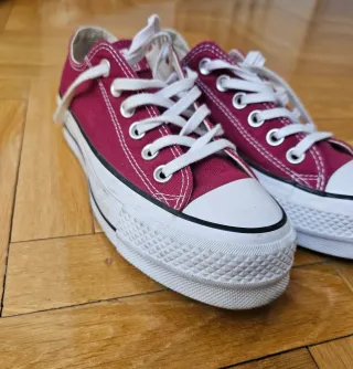 Zapatillas Converse originales en color granate, para mujer. De caña baja. Son las Chuck Taylor All Star Platform, con la plataforma más alta que las clásicas. Talla 36 Usadas solo 3 o 4 veces. Están como nuevas.