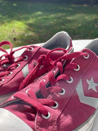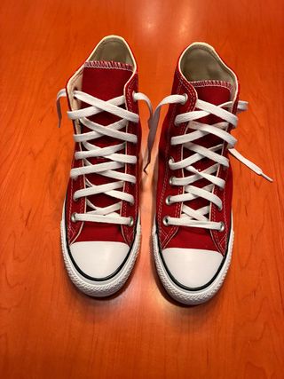 Zapatillas Converse de corte bajo en color granate. Puesta literalmente 3 veces. Están en perfecto estado. - Cierre con cordones blancos. - Suela de goma blanca. - Detalle de estrella lateral.