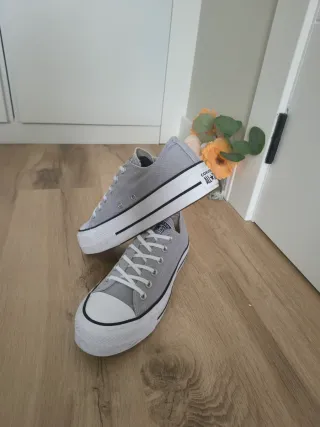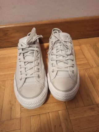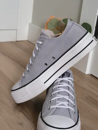 Converse con plataforma talla 39 color gris clarito, desgastes menores de uso que puedes ver en las fotos 🤗
