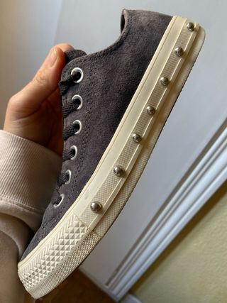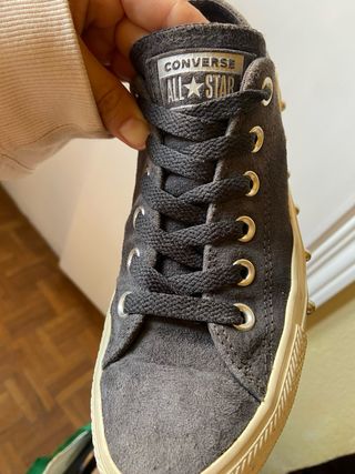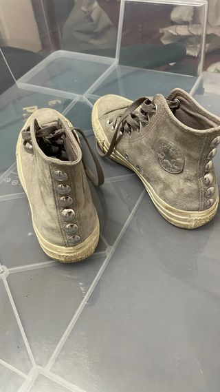Zapatillas Converse de edición especial en talla 37. Un diseño único con un toque rockero. - Exterior de ante gris. - Suela color crudo. - Detalles de tachuelas plateadas en la suela. - Cordones negros.