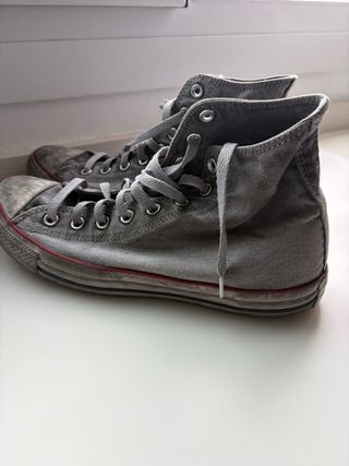 Zapatillas altas de lona Converse original - Color gris efecto ahumado. - Cordones grises. - Suela blanca gruesa. - Detalle de banda negra en la suela. Talla 39, usadas muy poco, precio original 100 euros