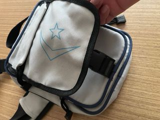 SOLO ENVIO Bolso bandolera de la marca Converse, ideal para llevar tus esenciales. - Diseño moderno en tonos grises y detalles en azul. - Correa ajustable para mayor comodidad. - Compartimento principal con cierre de cremallera. - Bolsillo frontal con solapa y cierre de clip.