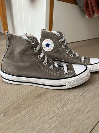 Vendo un par de zapatillas de lona estilo Converse. Son de color gris y tienen un diseño clásico. - Son zapatillas altas. - Las zapatillas presentan un ligero desgaste por el uso, pero están en buen estado general. - Ideales para el uso diario.