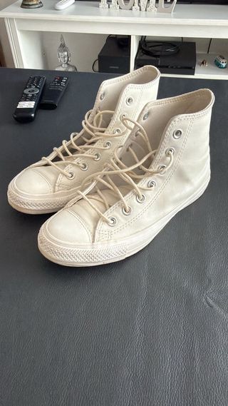Converse con plataforma efecto desgastado. Compradas así, se puede ver en la última foto no están sucias son así, número 43. Nada rotas ni por dentro ni por los lados. Súper nuevas.