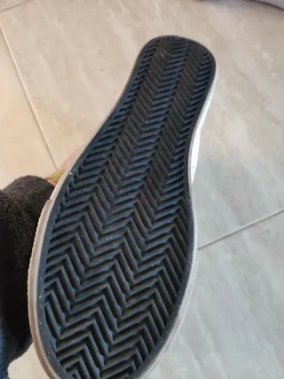 Zapatillas Converse altas en color beige. Están en muy buen estado, apenas usadas. - Diseño con detalles dorados. - Suela de goma blanca. - Cordones de color blanco.