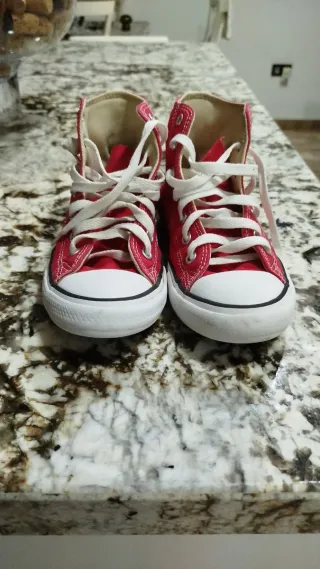 Zapatillas Converse All Star para niño en color rojo y blanco. Ideales para el día a día. Talla 34. - Suela de goma antideslizante. - Cierre de cordones. - Diseño clásico.