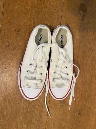 Zapatillas de lona de la marca Converse en color blanco, talla 34. - Cierre con cordones. - Detalle de línea roja en la suela. - Logo de la marca en la plantilla.