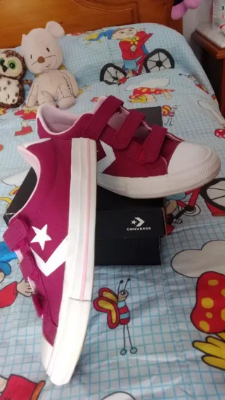 Zapatillas de la marca Converse para niña. Prácticamente nuevas como se puede ver en las fotos. - Cierre de velcro. - Detalle de estrella blanca. - Suela de goma blanca. - Su caja original