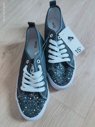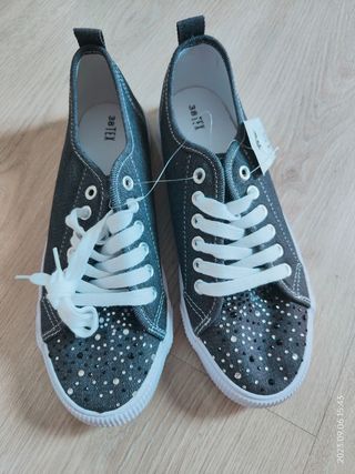 Zapatillas NUEVAS lona gris strass 38