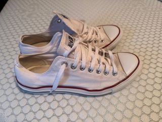 Zapatillas Converse All Star Ox en color blanco, talla 45. Están en muy buenas condiciones - Modelo: M7652C - Estilo: All Star Ox - Color: Optical White - Talla UK: 11 - Talla EUR: 45 - Talla CM: 29.5 - Fabricadas en India - Originales 100%