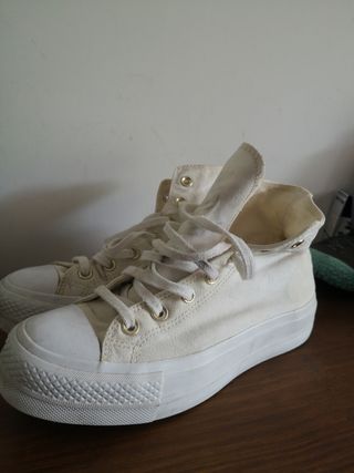 Zapatillas Converse modelo CHUCK TAYLOR ALL STAR LIFT - Vintage white/egret/gold. Modelo bota imitación cuero en color blanco con plataforma y detalles dorados. Solo usadas una vez, están como nuevas y en su caja original.