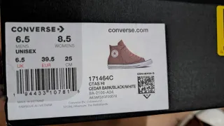 Zapatillas Converse CTAS HI en color Cedar Bark/Black/White. Modelo de caña alta. - Talla UK 6.5 / EUR 39.5 / CM 25. - Fabricadas en Vietnam.
