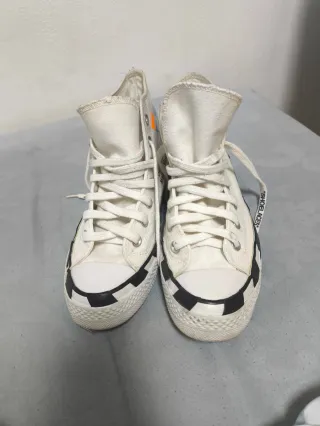 Zapatillas de lona Converse X Off-White. - Modelo de alta - Color blanco y negro - Talla 44 EU