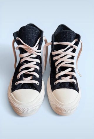 Zapatillas Converse de caña alta en color negro y blanco. Un clásico para cualquier ocasión. Talla EUR 38. Están prácticamente nuevas. Las he usado no más de 3 veces.. - Diseño de botín. - Cordones blancos. - Suela de plataforma. Precio original: 90€