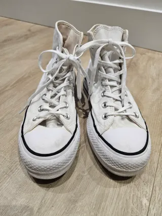 vendo converse piel blanca con plataforma. en buen estado.