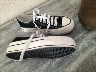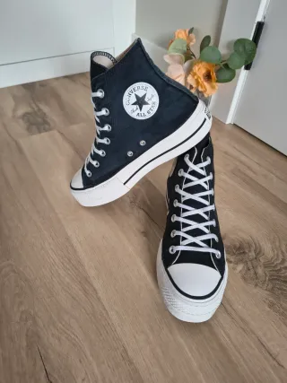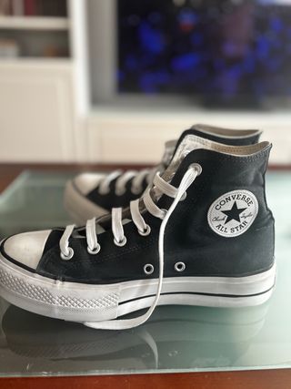 Converse de plataforma talla 39 color negro 🖤. Un clásico que no puede faltar en tu armario 👌🫶 muy poquito uso, ver fotos 🤗