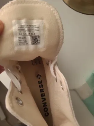 Zapatillas Converse de caña alta en color blanco. Tienen una suela gruesa y robusta. - Cierre con cordones. - Detalle de ojales metálicos. - Parte superior de lona. Son de mujer tienen unas pequeñas manchas que se ven pero es de estar guardados que se me an manchado con otros zapatos