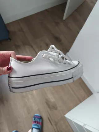 Converse con plataforma talla 40 color blanco 🤍🤍 básico perfecto para todo el año 👌🫶 desgastes menores de uso que puedes ver en las fotos 🤗