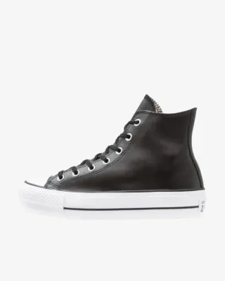 Zapatillas Converse Chuck Taylor de caña alta con plataforma. - Color negro con detalles blancos. - Cordones blancos. - Suela de goma blanca. - Logo circular de Converse All Star en el lateral.