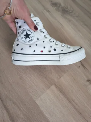 Converse con plataforma talla 39 color blanco con estrellas bordadas 🤍🌟🌀 desgastes menores de uso que puedes ver en las fotos 🤗