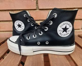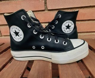 Converse All Star con plataforma, de piel, y caña alta. Talla 37. Son negras y están en buen estado.