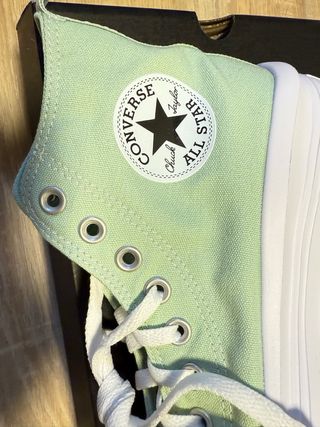 Producto original. 👟Zapatillas Converse de plataforma en color verde. Un diseño moderno y llamativo. - Corte alto. - Cierre de cordones. - Suela de goma blanca.