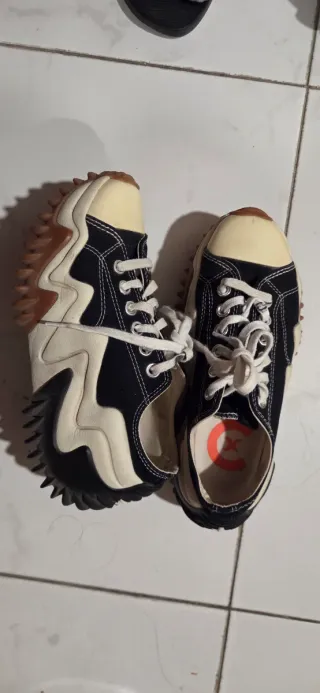 Zapatillas Converse Run Star Hike en talla 37. Diseño moderno y llamativo. - Combinación de colores beige y negro. - Suela gruesa con plataforma. - Cordones blancos.