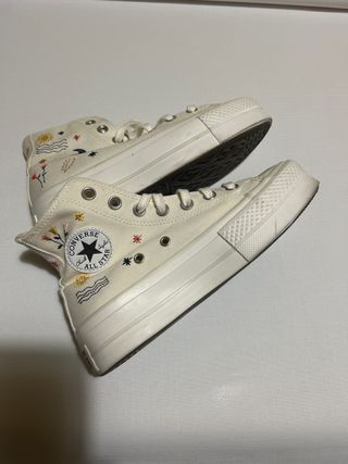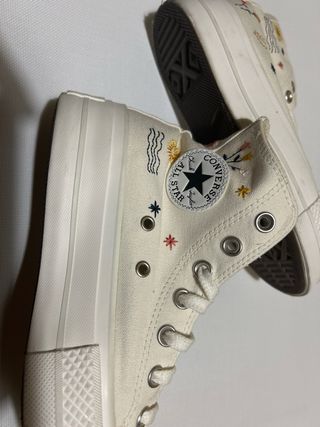 Converse Chuck Taylor All Star Platform blancas, impecables. - Son unas zapatillas altas. - Tienen plataforma. - Están decoradas con bordados. - Usadas 1 vez