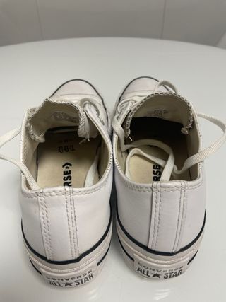 Zapatillas Converse blancas de plataforma. Ideales para darle un toque moderno a tu estilo. - Son de caña alta. - Tienen cordones blancos. - La suela es de color marrón claro. - Están en muy buen estado.