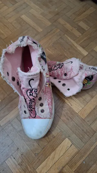 Zapatillas altas de lona en color rosa. - Cierre de cordones. - Ojales metálicos. - Suela de goma blanca. - Usadas en una ocasión.
