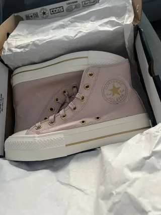 Zapatilla converse tipo bota en color rosa Con plataforma y detalles dorados NO PESAN NADA Tallas disponibles: 38/24,5cm 36.5/23cm