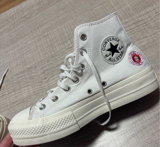 Zapatillas altas Converse Chuck Taylor All Star en tono rosa pálido con plataforma. solo usadas una vez porque se quedaron pequeñas - Cordones blancos. - Ojales dorados. - Suela blanca de goma.