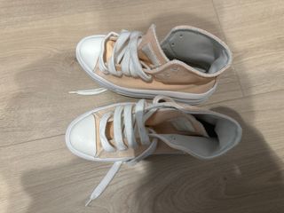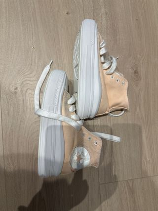 Zapatillas Converse de color beige, talla 39,5. Son de ante y tienen detalles en dorado rosa. Están en muy buen estado. - Ideales para un look casual y cómodo. - Perfectas para el día a día.