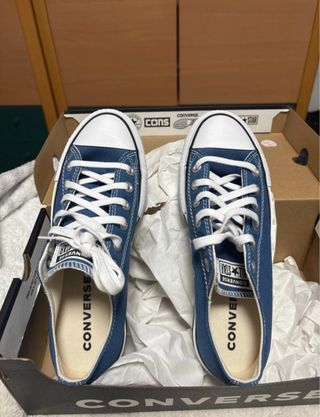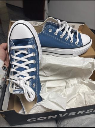 Zapatillas Converse All Star de color azul, talla 38, a estrenar. - Diseño clásico de caña baja. - Cordones blancos. - Suela de goma blanca.
