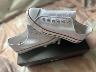 Zapatillas de lona estilo clásico. - Diseño bajo. - Cordones blancos. - Suela de goma blanca. - Logo de Converse en la lengüeta. Probadas sin uso