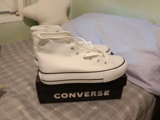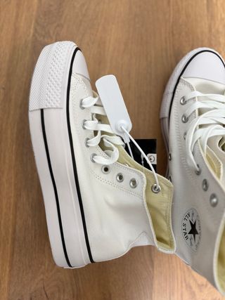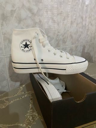 Zapatillas altas Converse Chuck Taylor All Star Lift en color blanco. Plataforma gruesa para un estilo moderno. TOTALMEMTE SIN ESTRENAR ESTRENAR. Las vendo porque me quedan muy justas. justa - Diseño de caña alta. - Cierre con cordones. - Logo circular de Converse en el lateral.