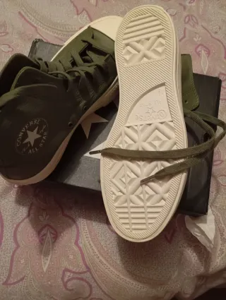 Zapatillas altas Converse para mujer, sin estrenar. - Color verde oliva. - Diseño planta forma - Cierre con cordones. - Logo de Converse en el lateral.