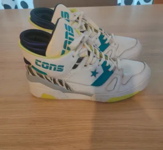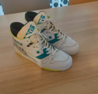 Zapatillas altas de la marca Converse para hombre. Diseño deportivo y moderno. - Color blanco con detalles en verde azulado y amarillo. - Cierre de cordones. - Logo de Converse en la lengüeta y lateral.El precio es negociable siempre y cuando la oferta sea razonable,todas las prendas son originales no me dedico a vender réplicas de marcas si así fuera también lo diría sin ningún problema.