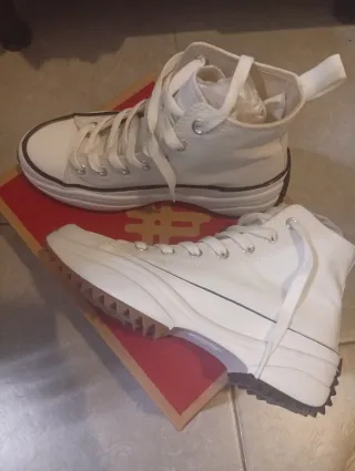 Zapatillas altas de lona con plataforma. Talla 38. Nuevas sin estrenar. Más cosas en mi perfil. - Cierre de cordones. - Detalle de estrella en el lateral. - Suela de goma blanca.