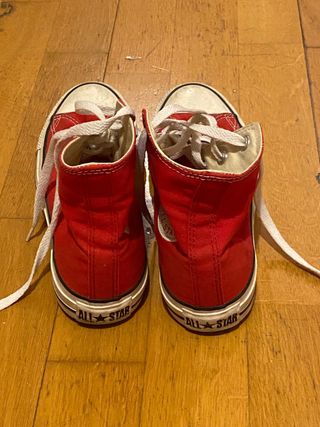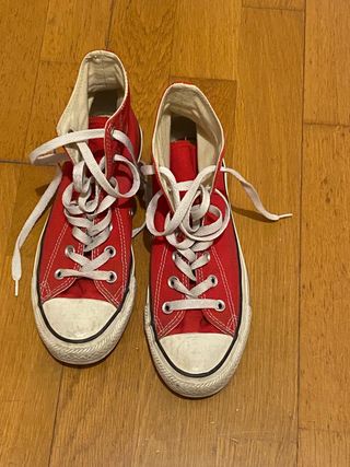Zapatillas Converse originales de color rojo, modelo de caña alta. Talla 37,5 aunque dan bastante talla porque yo uso 39 y las he usado sin problemas - Cierre con cordones blancos. - Puntera reforzada. - Suela de goma. - Interior forrado.