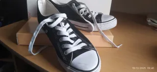 Zapatillas de lona estilo Converse, usadas una sola vez y en perfecto estado. - Cierre con cordones blancos. - Suela de goma blanca. - Detalle de costuras blancas.