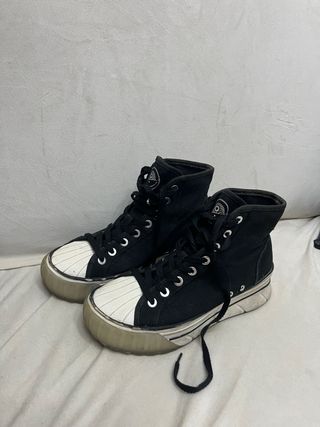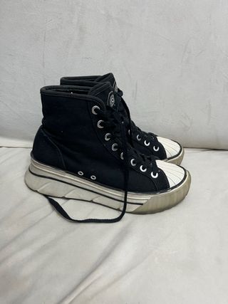 Zapatillas tipo Converse, nuevas y sin estrenar. Un diseño moderno y cómodo. - Cierre con cordones y cremallera lateral. - Suela gruesa de plataforma. - Combinación de materiales.