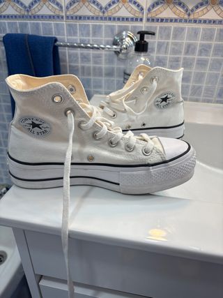 SE ME HA PASADO EL PLAZO DE DEVOLUCION Y NO LAS PUEDO DEVOLVER. ESTAN SIN USAR Zapatillas Converse de plataforma, altas y de color blanco. Ideales para un look casual y moderno. - Cierre con cordones. - Suela de goma. - Diseño de caña alta.